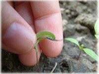 種子在上,並看到白白的細莖