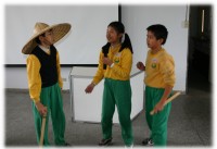 三.觀察整株咸豐草成長需四個月以上 為了真正了解大花咸豐草的成長過程,我們找在決定研究主題時(十月初),就在本班花圃播下咸豐草種子,每天作咸豐草的成長觀察紀錄,原本希望能夠紀錄咸豐草整個完整的開花結果過程,但直到十二月,兩個月的時間,咸豐草卻仍然未開花,因此在十二月初趕快到野外尋找較大株(但尚未長花苞)的咸豐草來做後續的觀察,以彌補花苞=>開花=>種子,這個生長的缺口。 四.需要十八般武藝才能完成專題 為了呈現大花咸豐草整個研究主題的完整,我們設計了戲劇表演宣傳,植物成長觀察,植物分類觀察,植物成長手繪畫本,炒咸豐草菜與煮青草茶,訪問國北教授,簡報製作等活動,這些活動我們必須學會劇本的撰寫,戲劇道具的準備,戲劇的表演動作,植物分類學概念,植物成長觀察技巧,素描技巧,訪問技巧,簡報呈現與報告技巧,炒菜技巧,最重要的是我們必須學會規劃活動的技巧,合作技巧,與大人溝通的技巧等等。 五.家長的質疑 因為活動關係,有時必須要要向安親班或才藝班請假來舉辦活動,並且常利用晚上時間上晚撰寫活動日誌,有些家長質疑這樣的活動會影響孩子的正規學習,而指導老師必須和家長溝通觀念並告知網界博覽會的性質與特色,希望家長能夠了解進而轉為支持的態度。